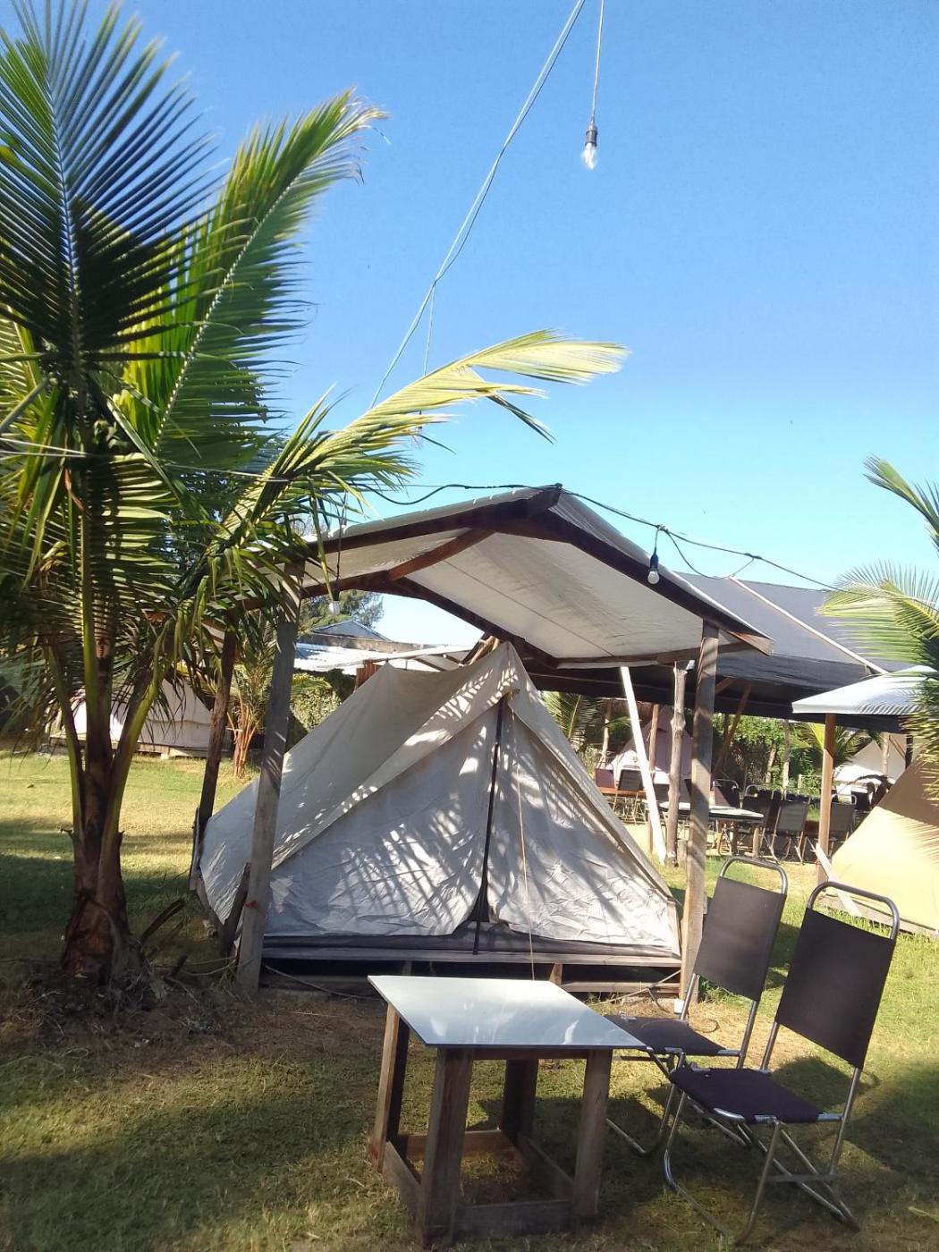 Tent. This tent has a shared bathroom, a seating area, a dining area as well as an outdoor dining area. The unit has 1 futon. ;
